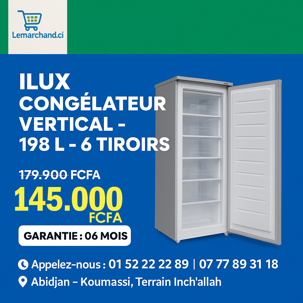 Ajouter au panierIlux Congélateur Vertical ILCV198-T6 / 198 L – 6 Tiroirs – Inox – Garantie 06 Mois