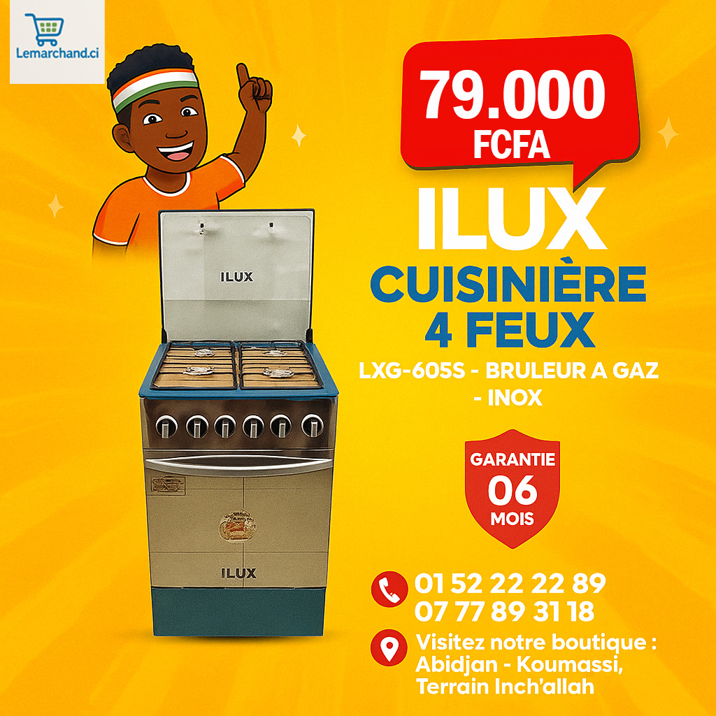 Ajouter au panierIlux Cuisinière 4 Feux LXG-15S- INOX – Garantie 06 Mois