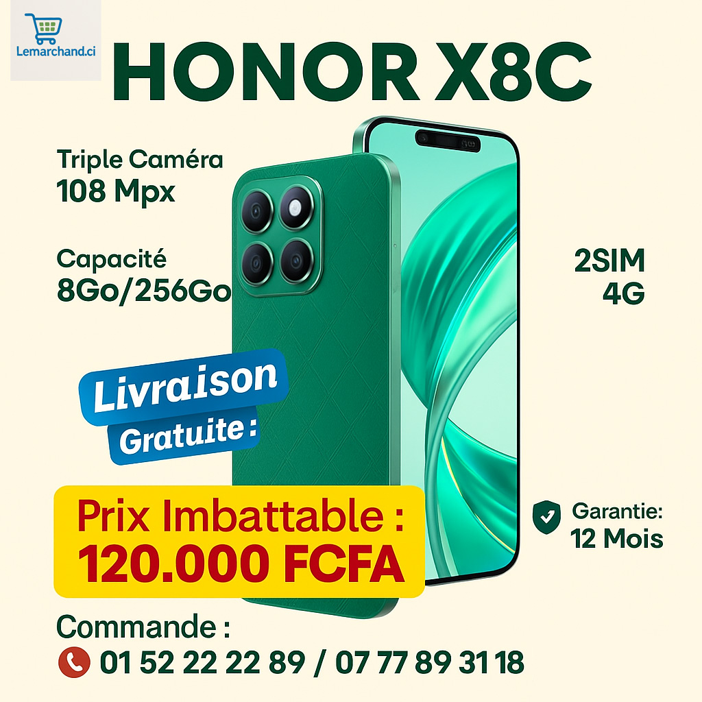 Ajouter au panierHonor X8C- 2SIM – 4G – 8Go Ram – 256 Go Rom – Triple Caméra 108 Mpx