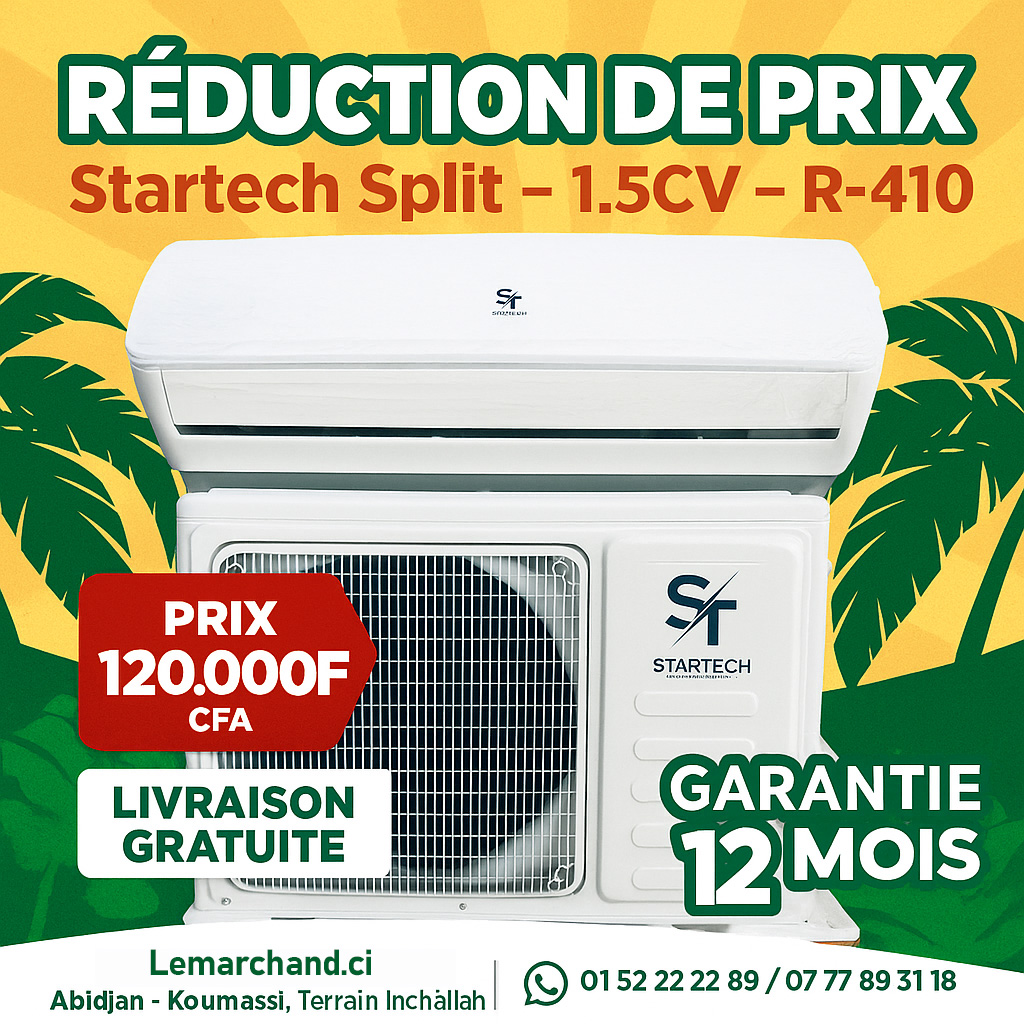 Ajouter au panierSTARTECH Split Mural- – 1 Cv- R410 – Blanc- Garantie de 06 Mois