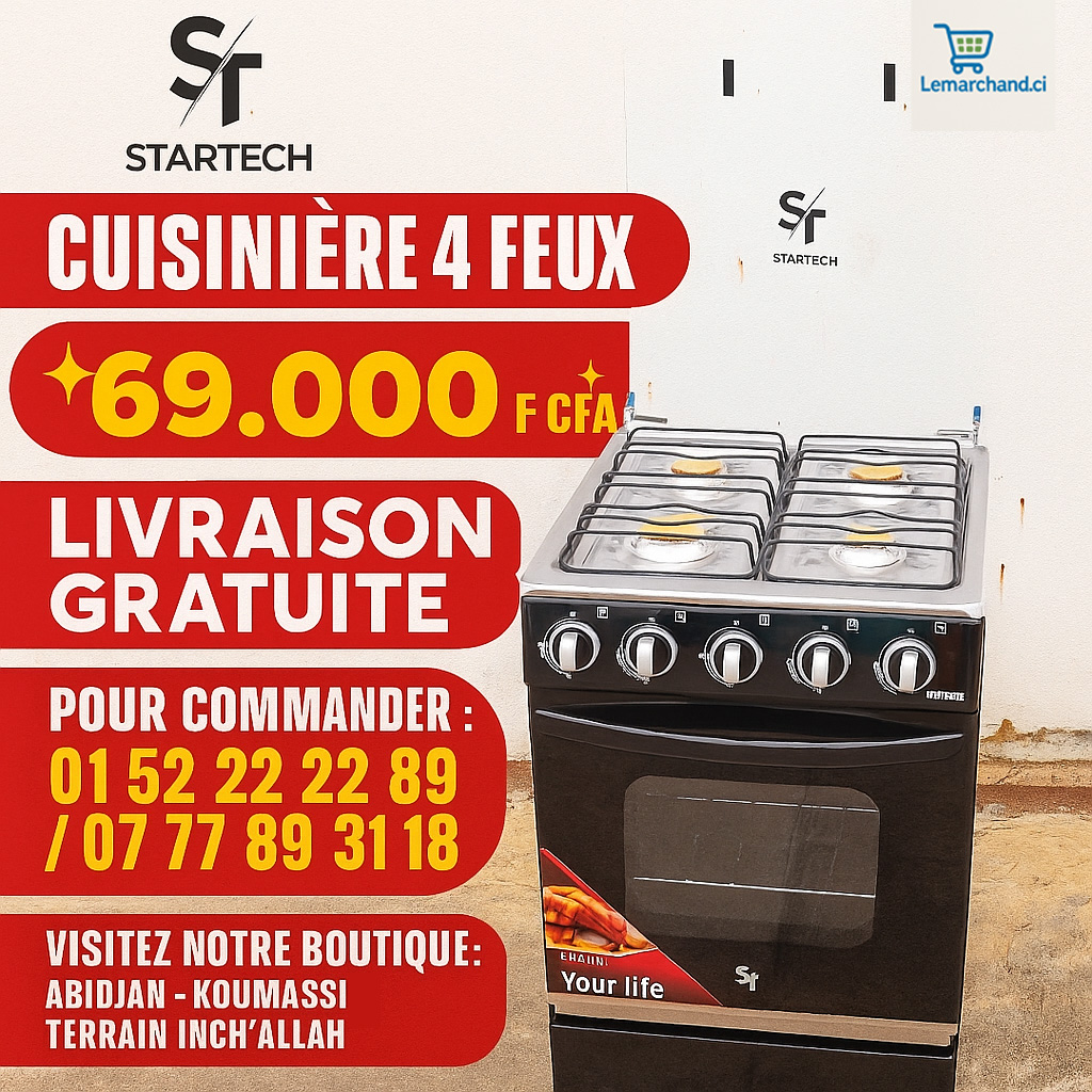 Ajouter au panierSTARTECH Cuisinière à Gaz SSGCPRO-5050-G / 4 feux Avec Four