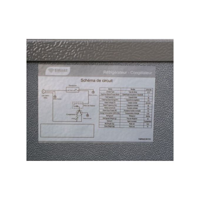 SMART TECHNOLOGY Réfrigérateur 2 Portes DFRST Smart- 60L – STR-75H – Gris – Garantie 06 Mois